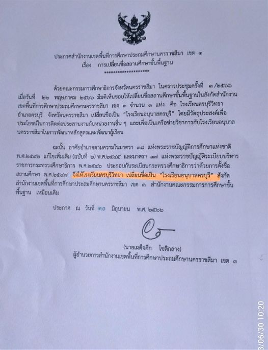 ประกาศเปลี่ยนชื่อสถานศึกษา